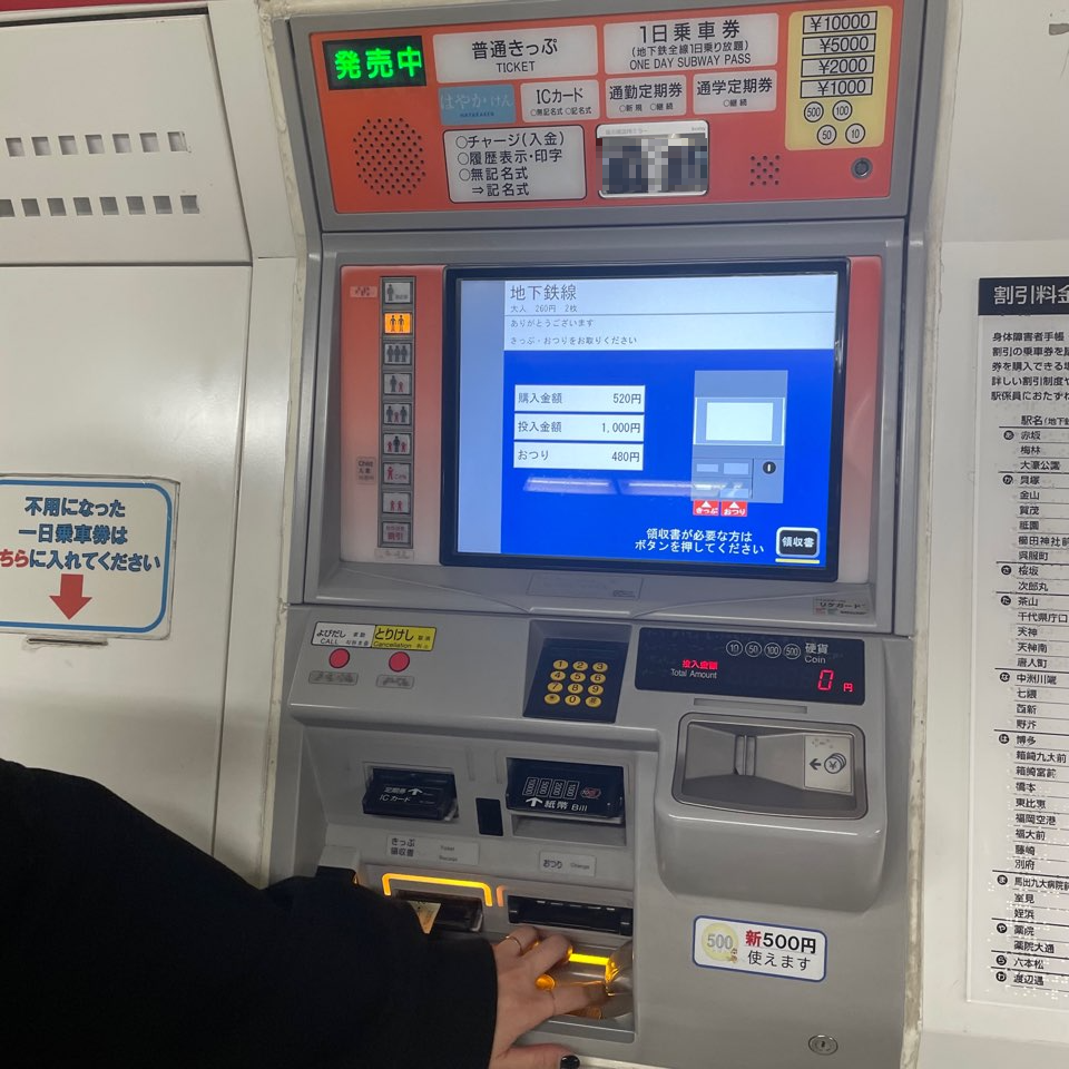 후쿠오카 공항역에서 하카타 지하철역으로 가는 티켓 끊고 고고!