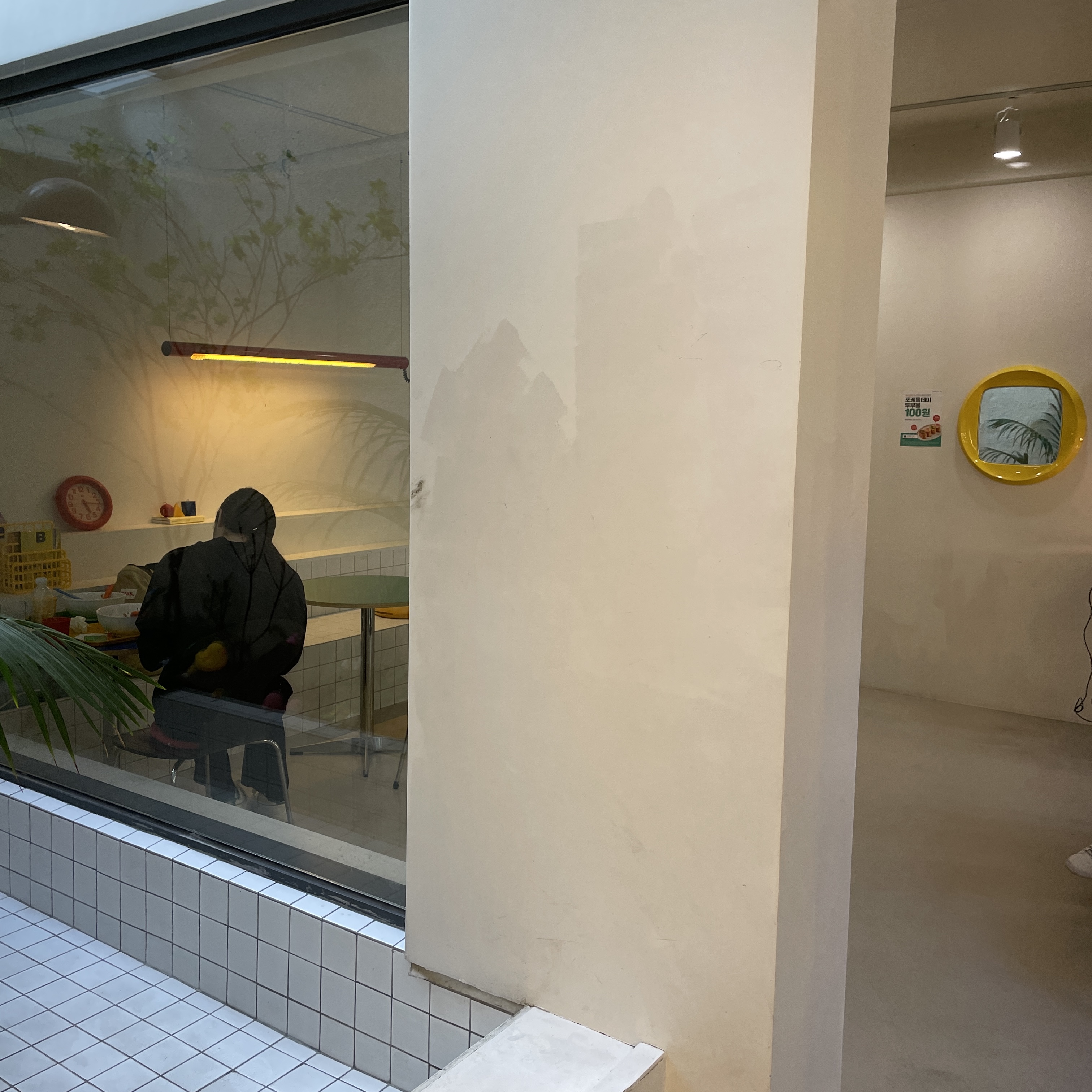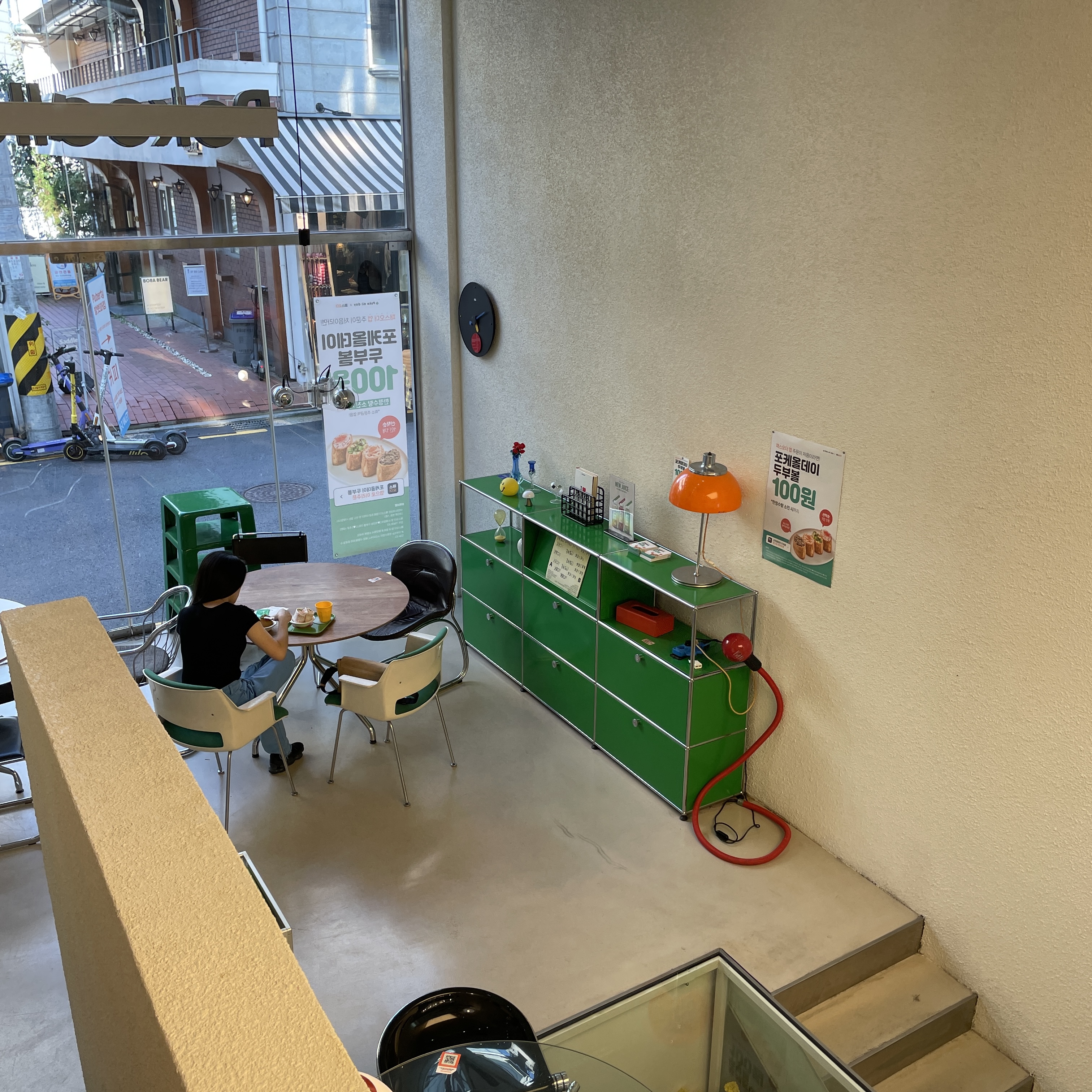 우리는 1층에 긴 타일 테이블에서 먹기로 결정!