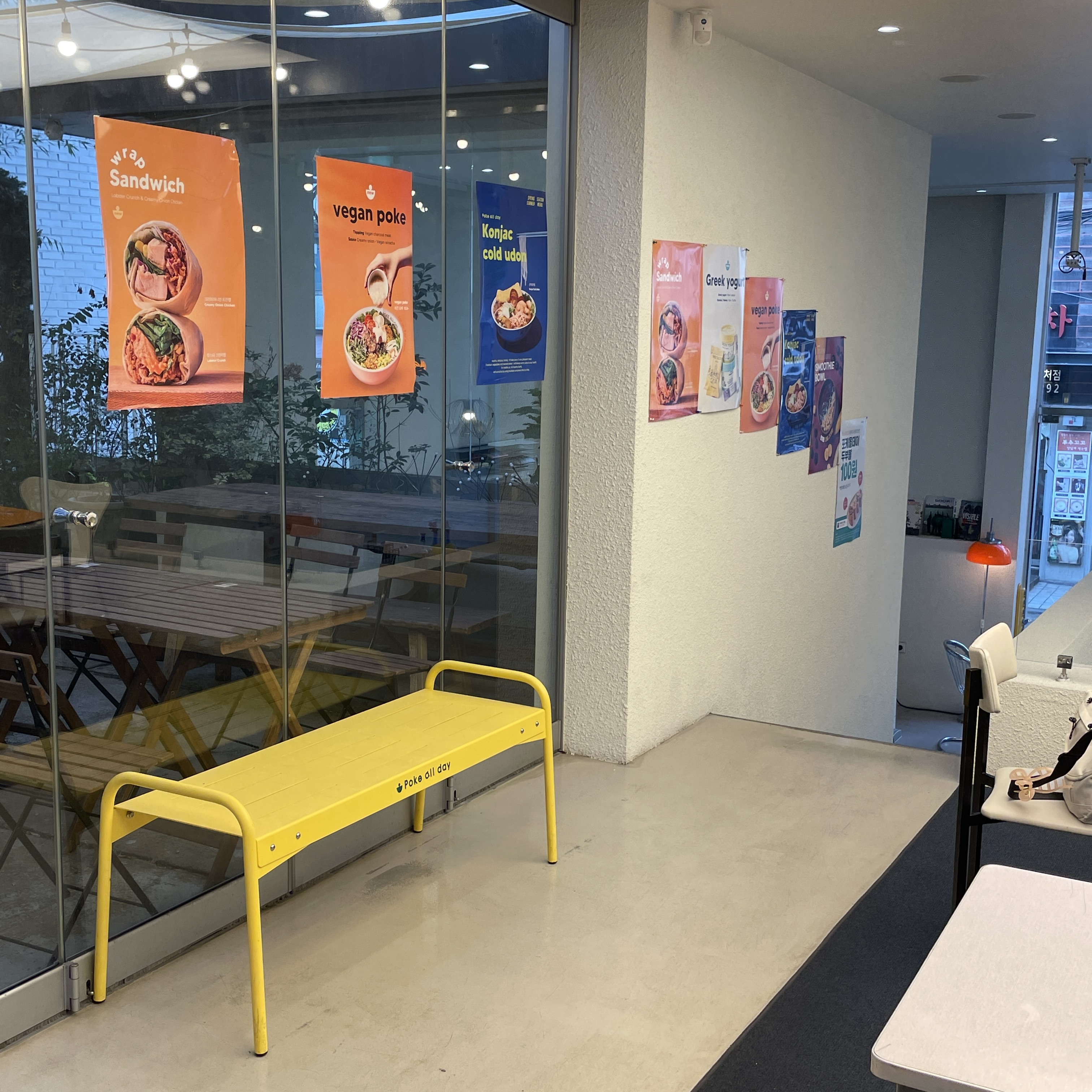 지하로 가는 계단 옆에 이렇게 투명 발판 위에 놓인 테이블