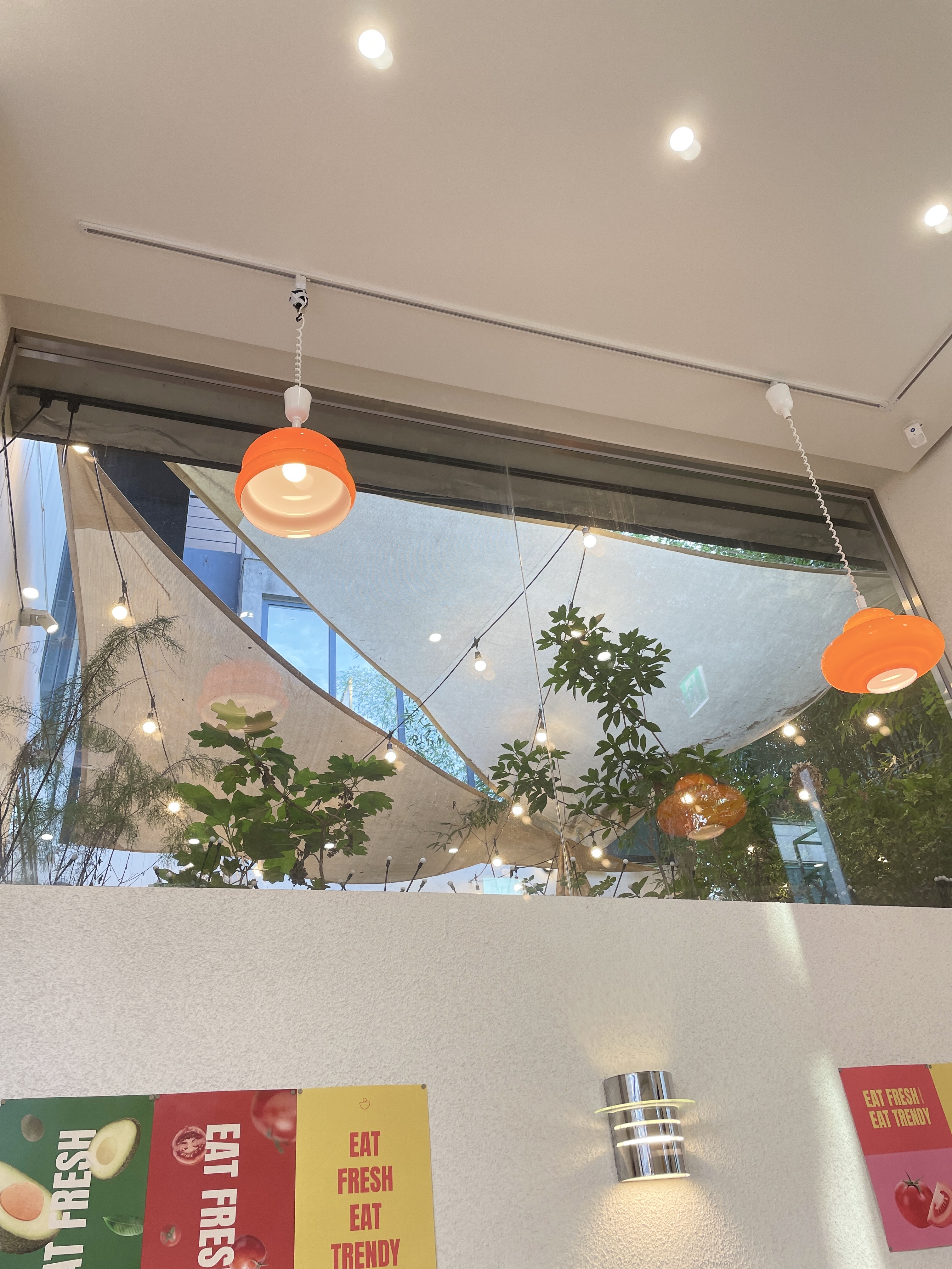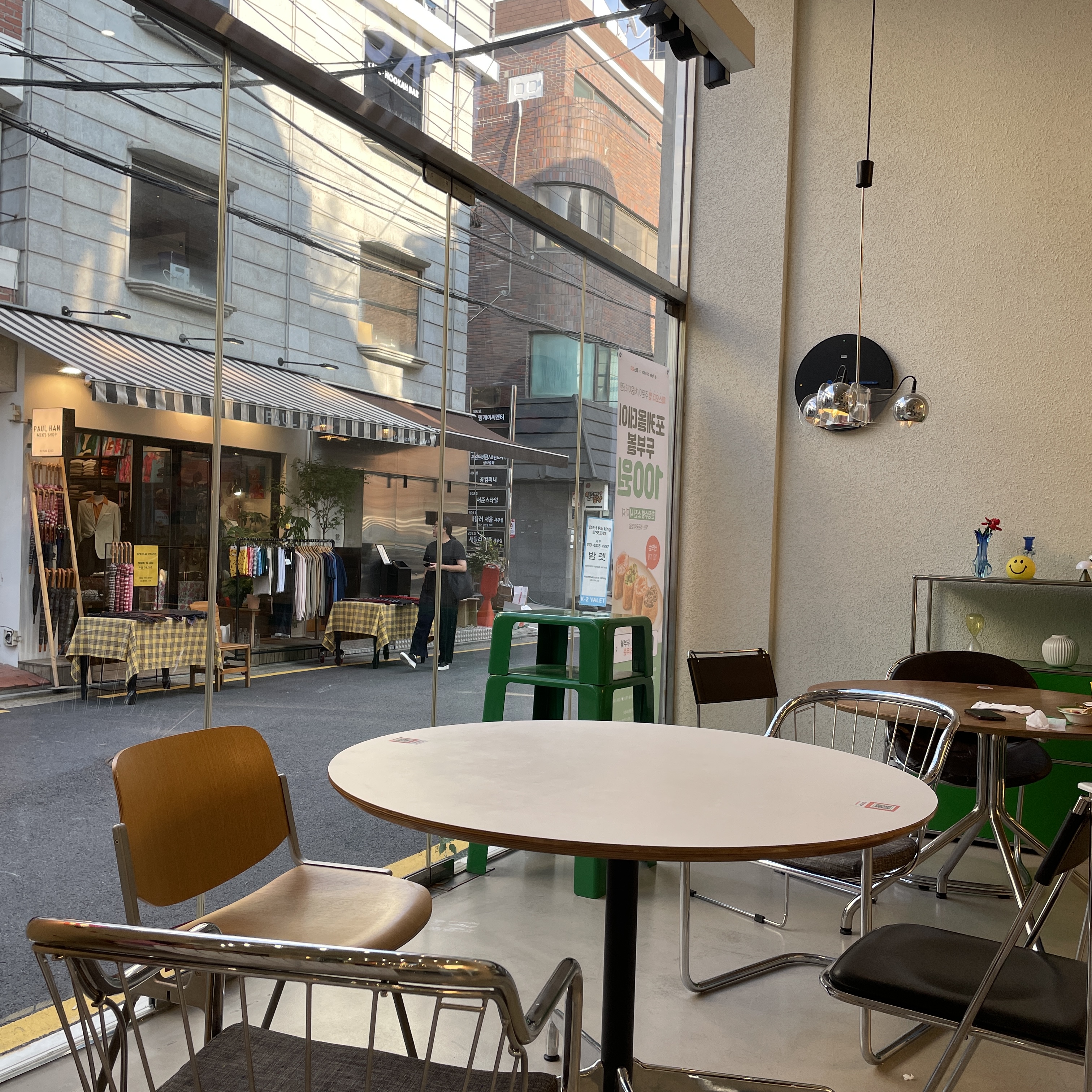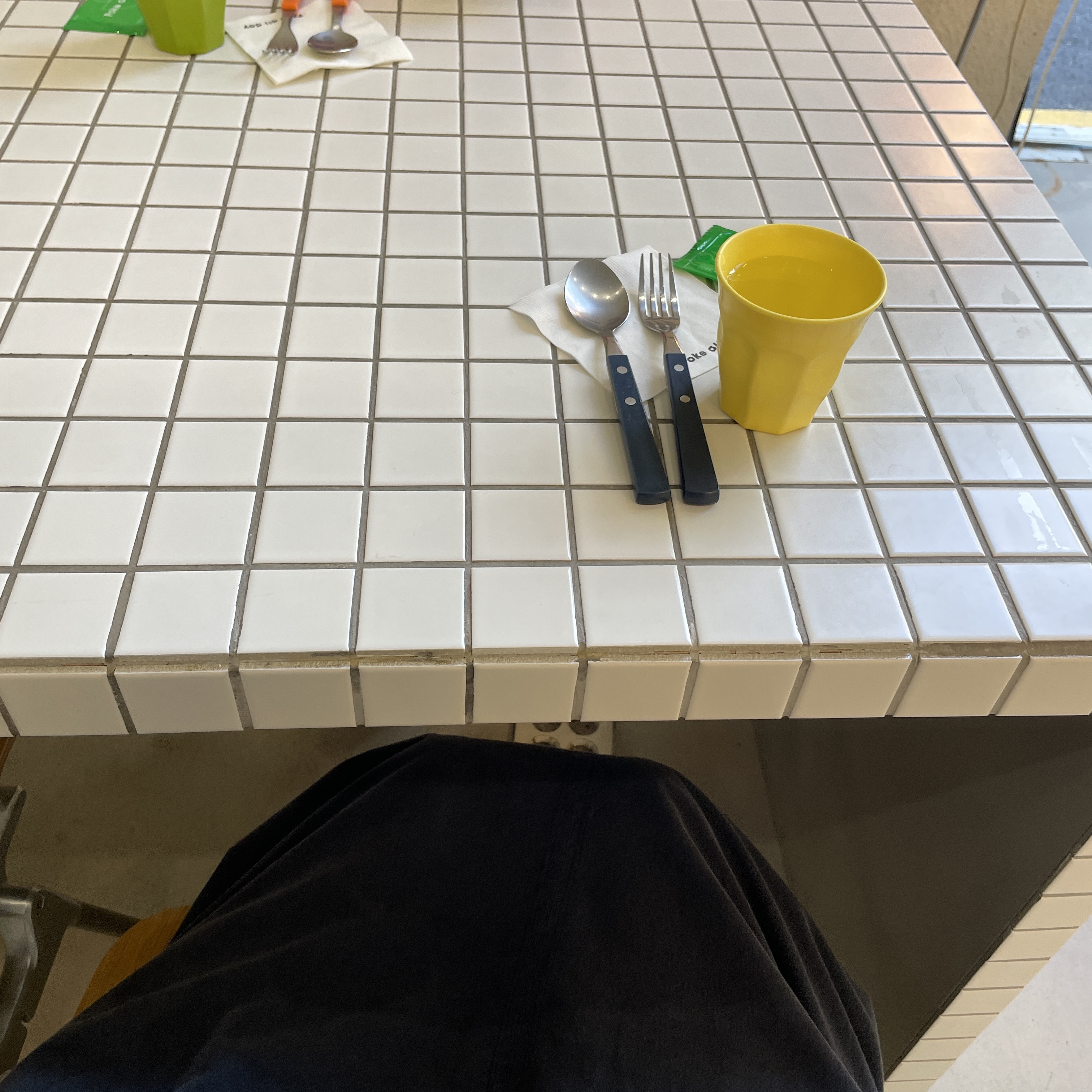 우리는 1층에 긴 타일 테이블에서 먹기로 결정!