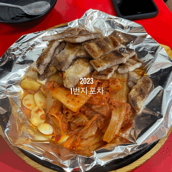 일번지포차의 간판 메뉴! 철판김치삽겹살