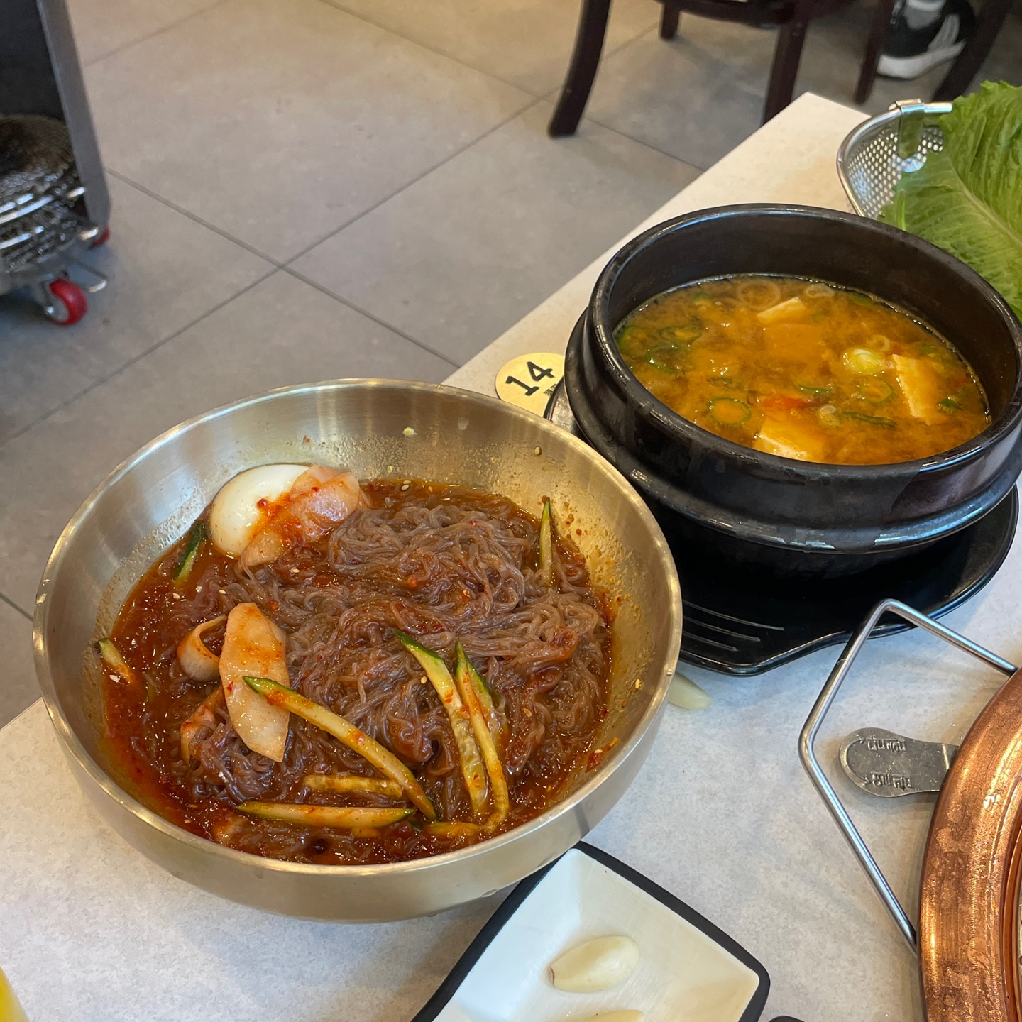 된장찌개, 비빔냉면, 물냉면, 맥주