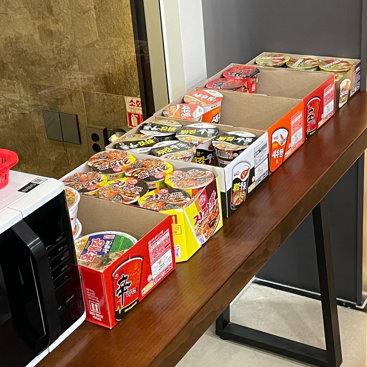 1층에 있는 로비에서 무려 다섯종류의 컵라면을