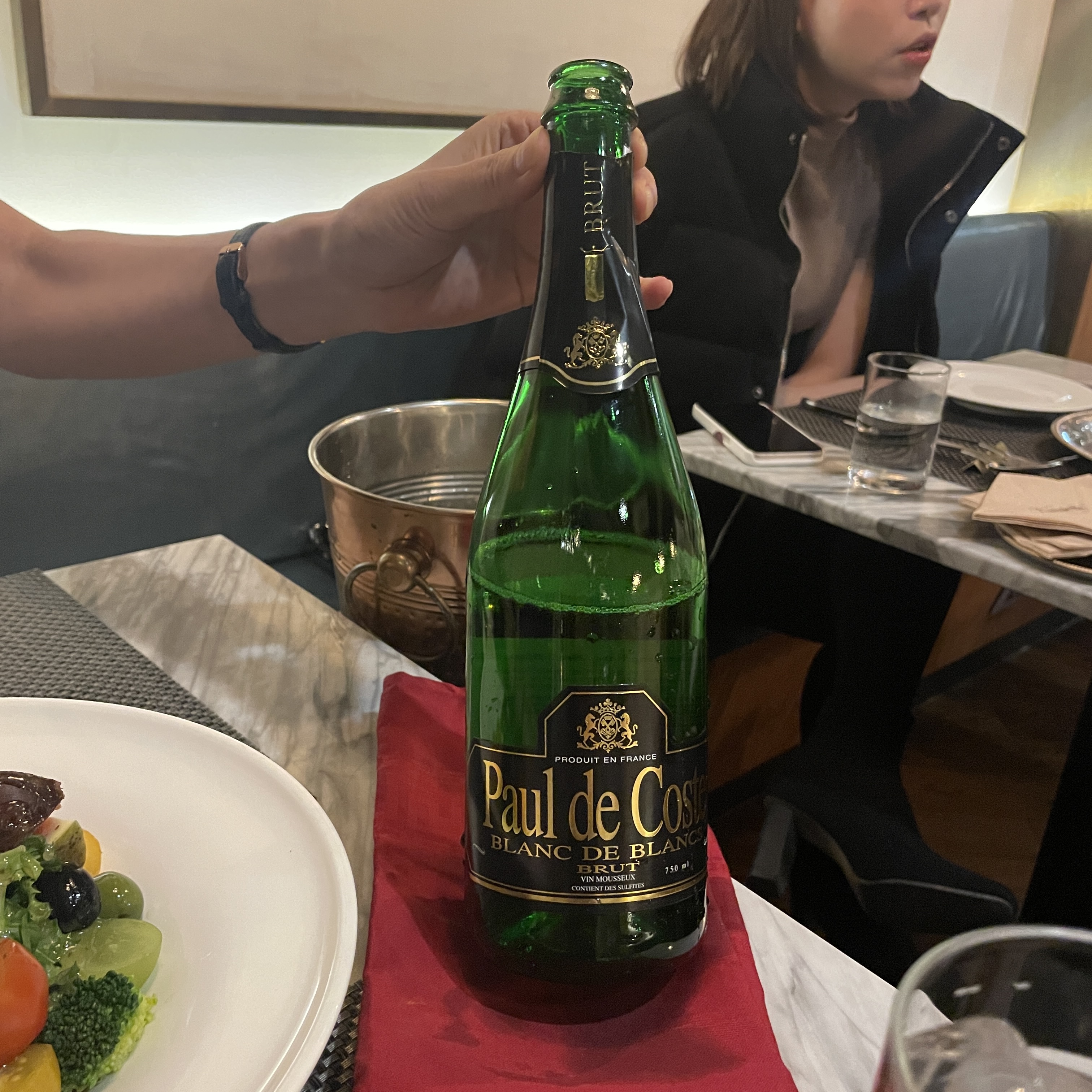 스파클링 워터와 와인 주문!
