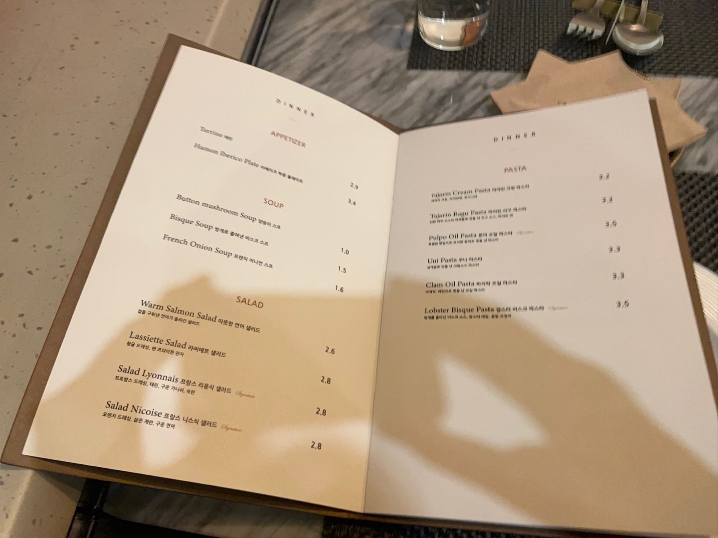p.s. 얼마 전에 동생이 가죽 메뉴판으로
