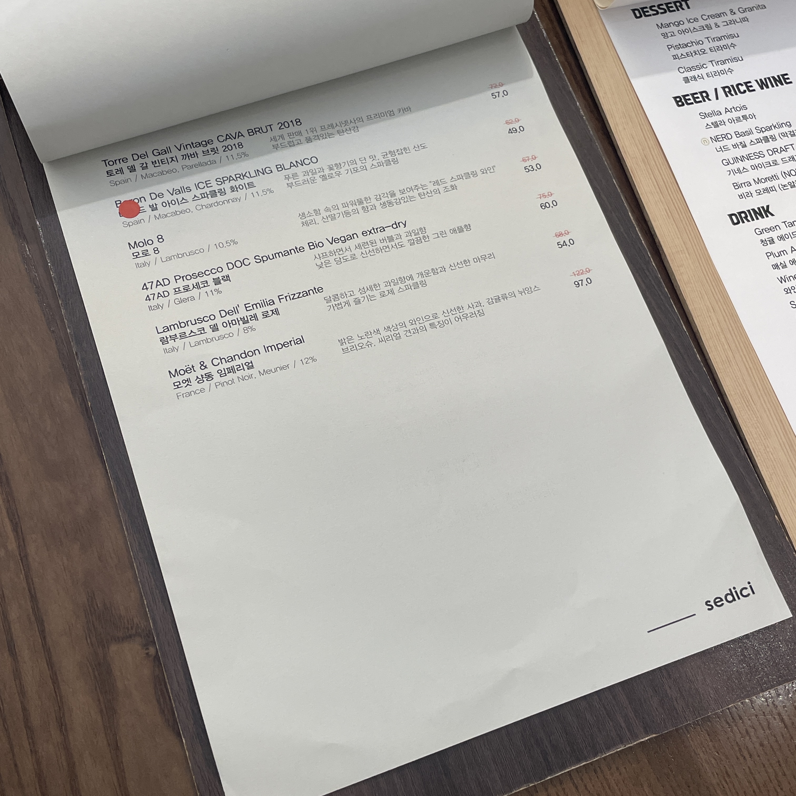 《세디치》 메뉴판 살펴보기