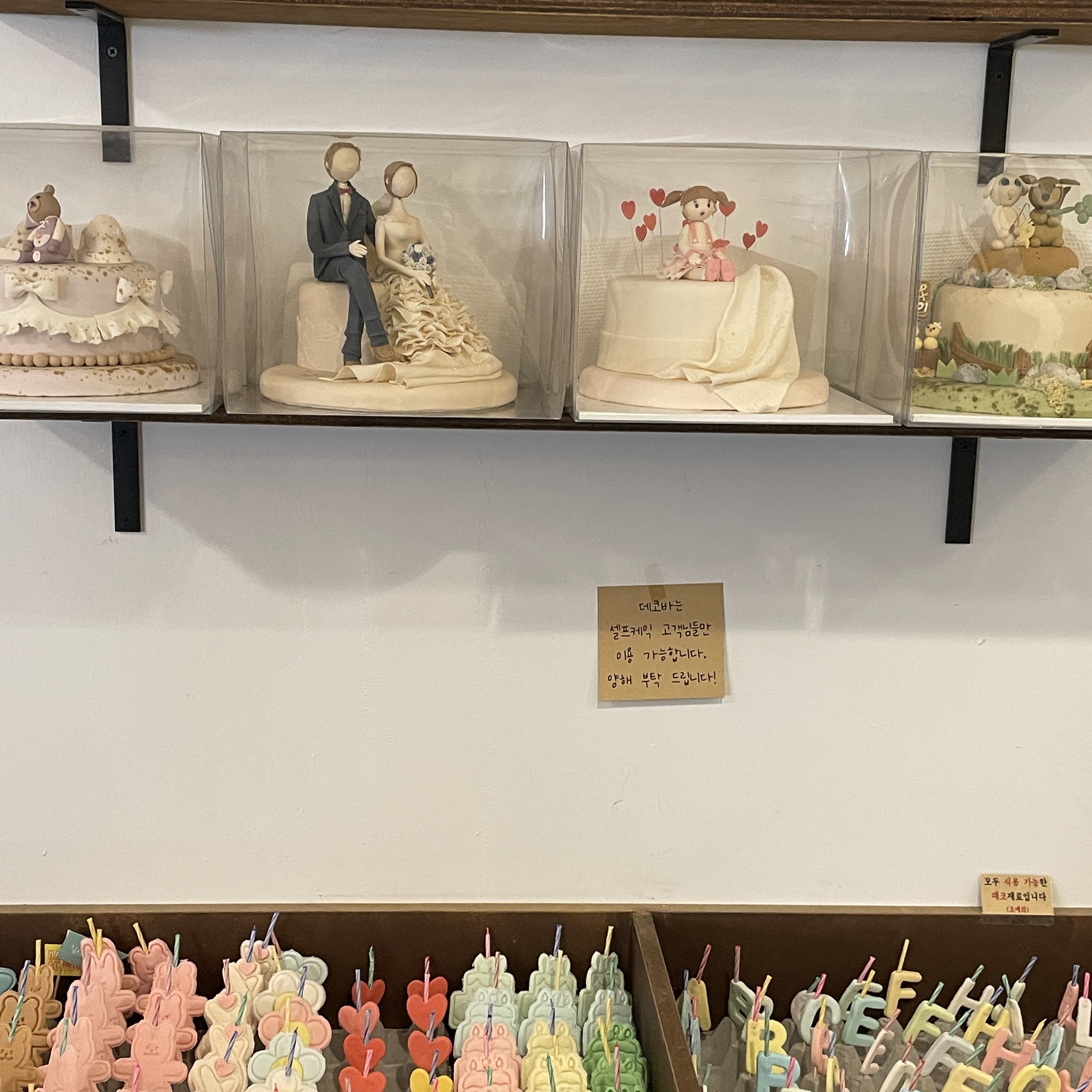 아래 사진들처럼 케이크를 꾸밀 소품들이 있다!