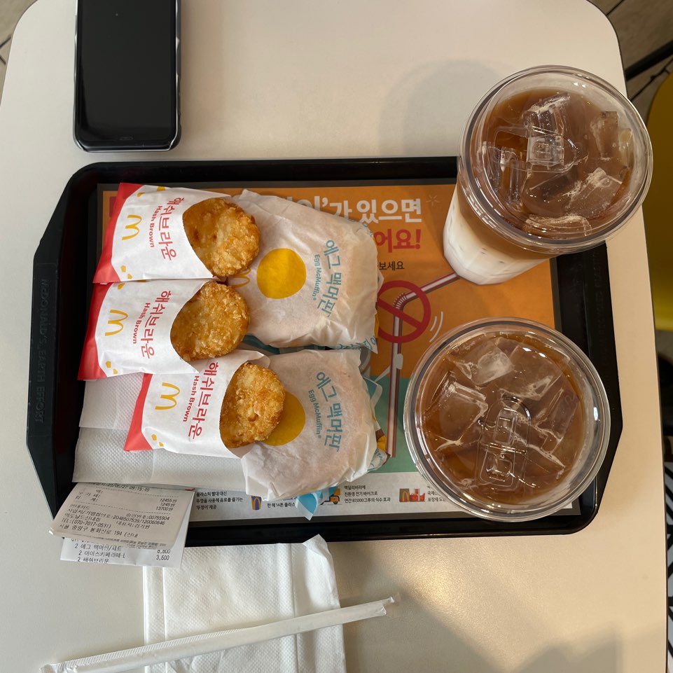 남은 해쉬브라운 1개는 맥머핀 안에 넣어서 먹어주는 꿀팁!🍯