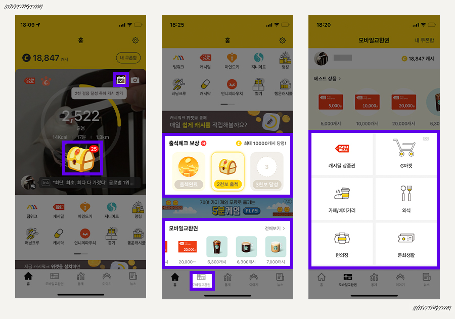 요걸로 커피 한잔 요긴하게 할 수 있다. 하루 만 걸음 걸으면 1,000캐시! 추천코드도 입력만하면 1,000캐시!