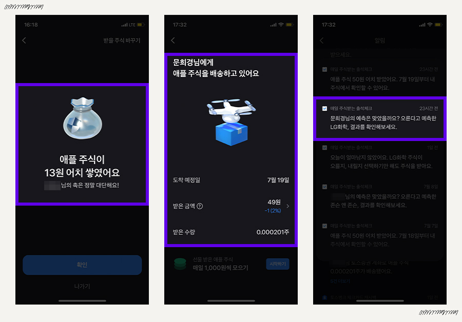 매일 출석체크를 하고, 토스측에서 제공하는 예측 퀴즈를 맞춰보는 기능이다. 실패하면 6원을 받을 수 있고, 성공하면 13원을 받을 수 있다. 차곡차곡 모아서 주식부자 되야지😂