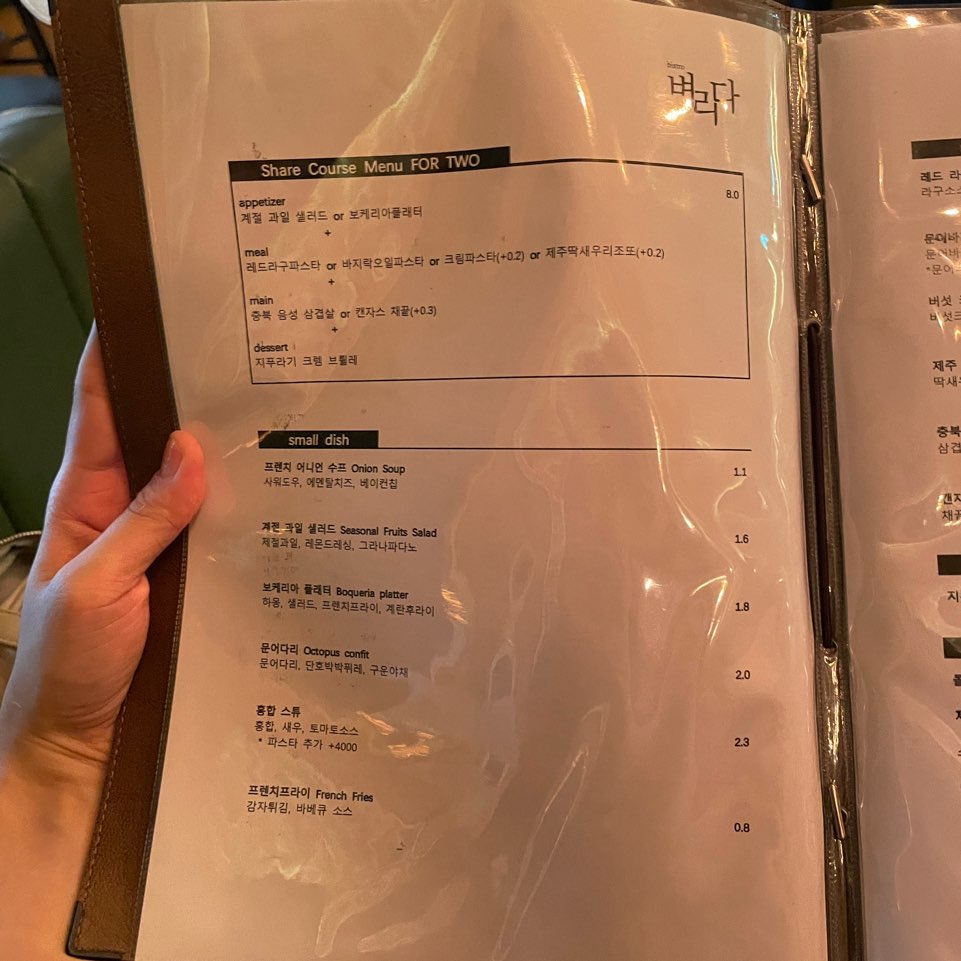 《벼리다》 메뉴판