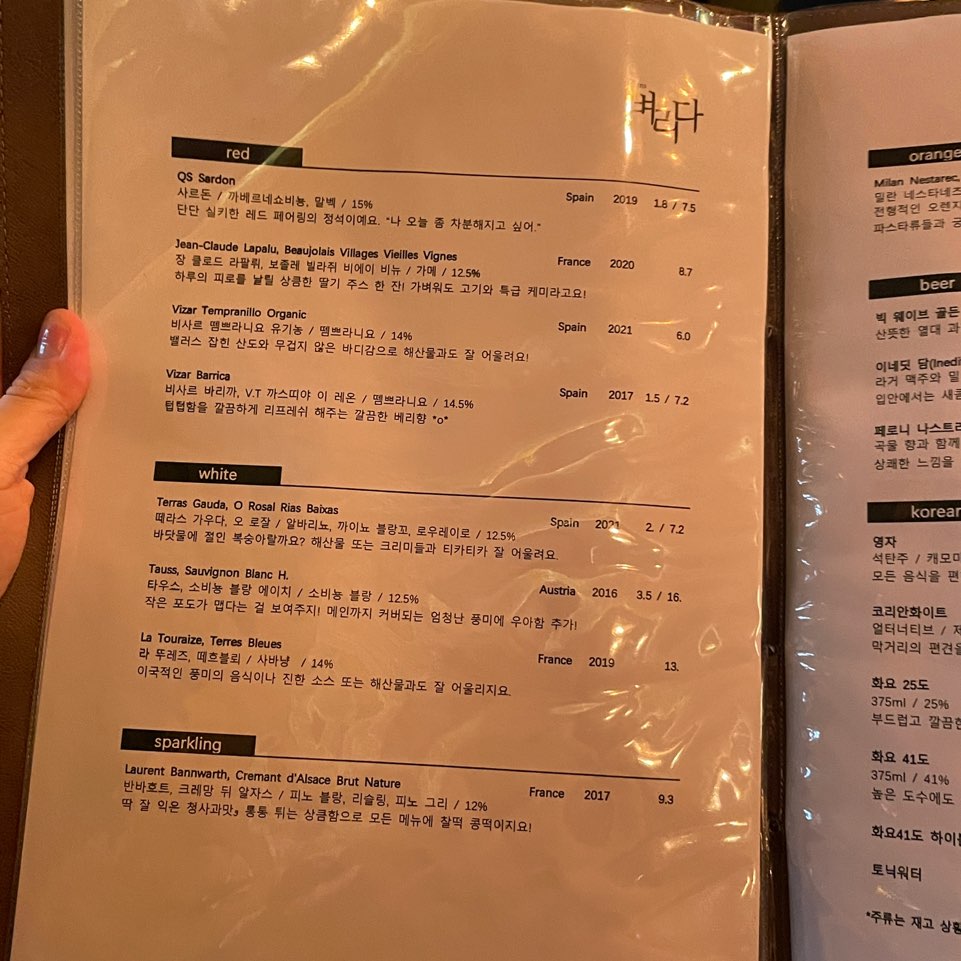 와인 1(벼리다에서 파는 화이트 와인 중 하나)