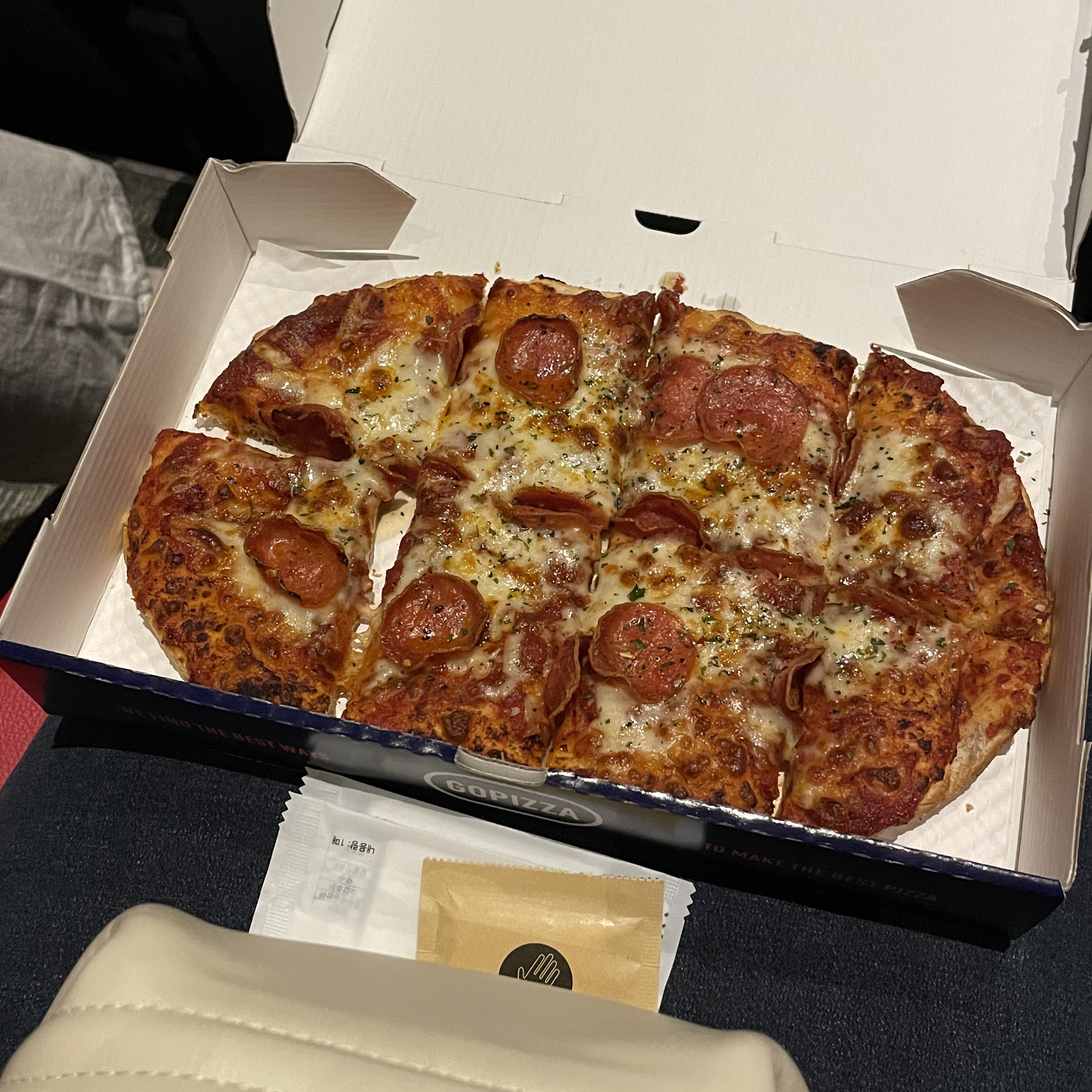 페퍼로니 피자로 시켰는데 끝에 도우까지 짭쪼롬하니 맛남