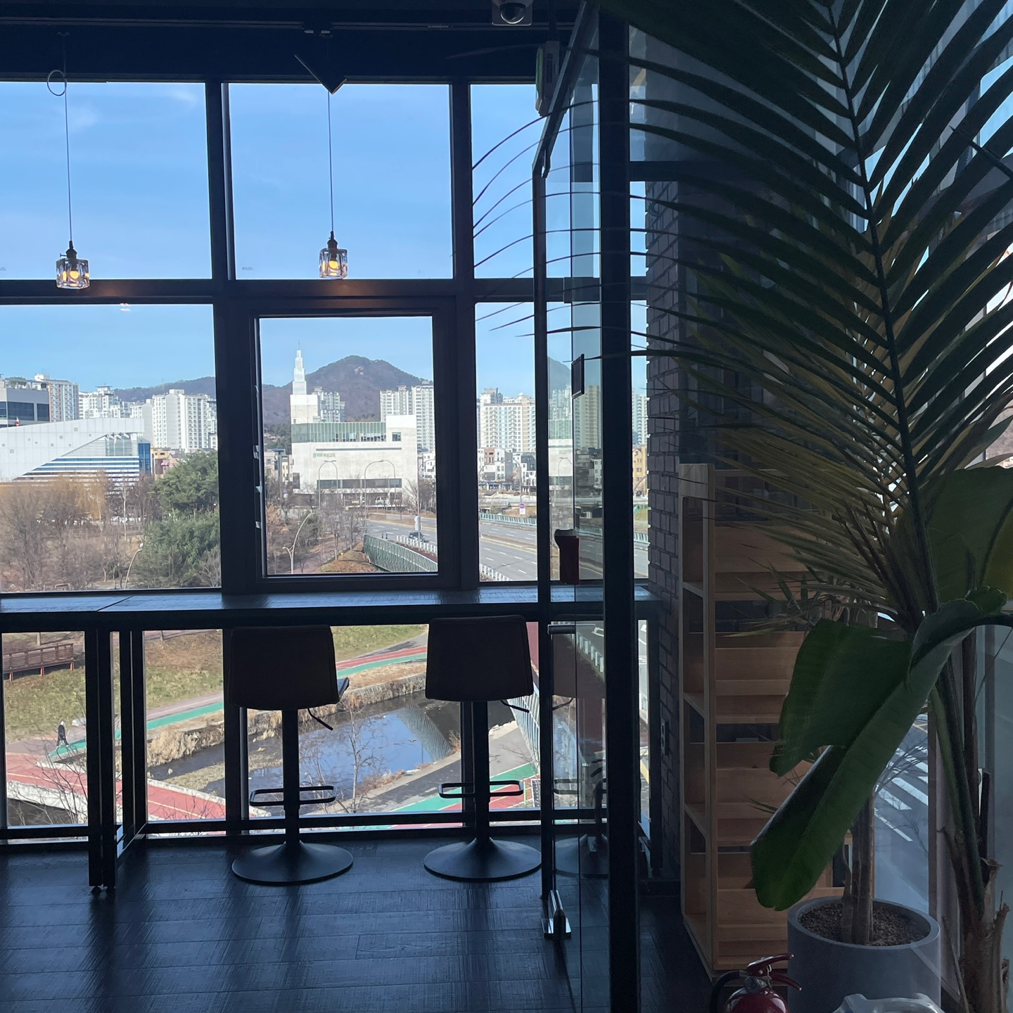 불암산이 훤하게 보이는 카페 외부!