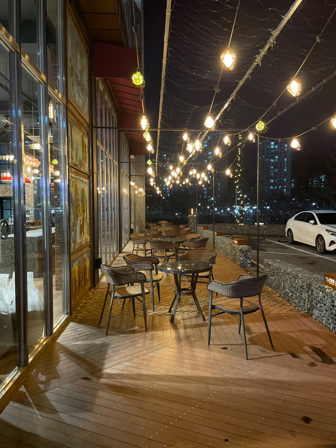 밖에 조명이 은은하게 빛난다!