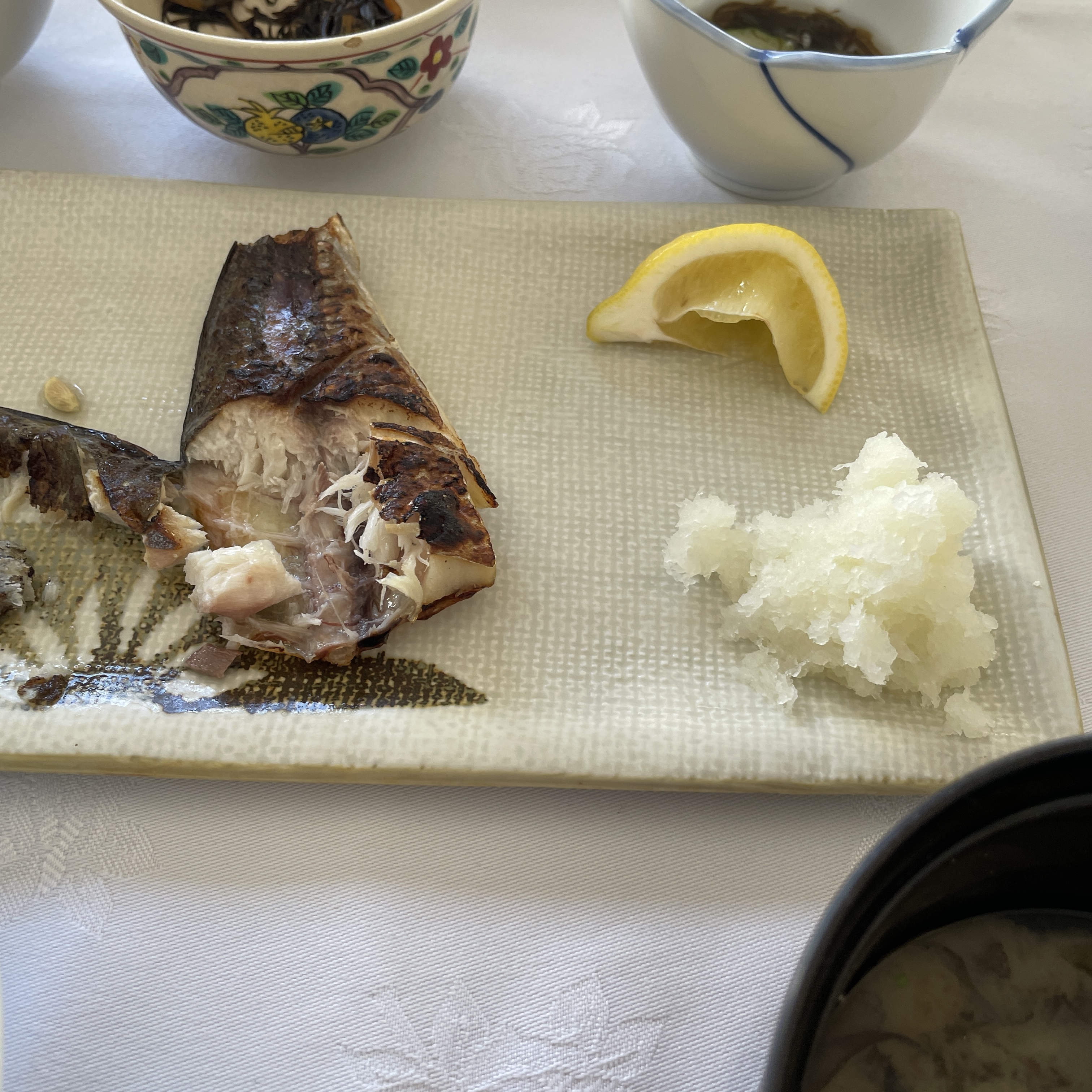 따뜻한 미소장국과 생선구이는