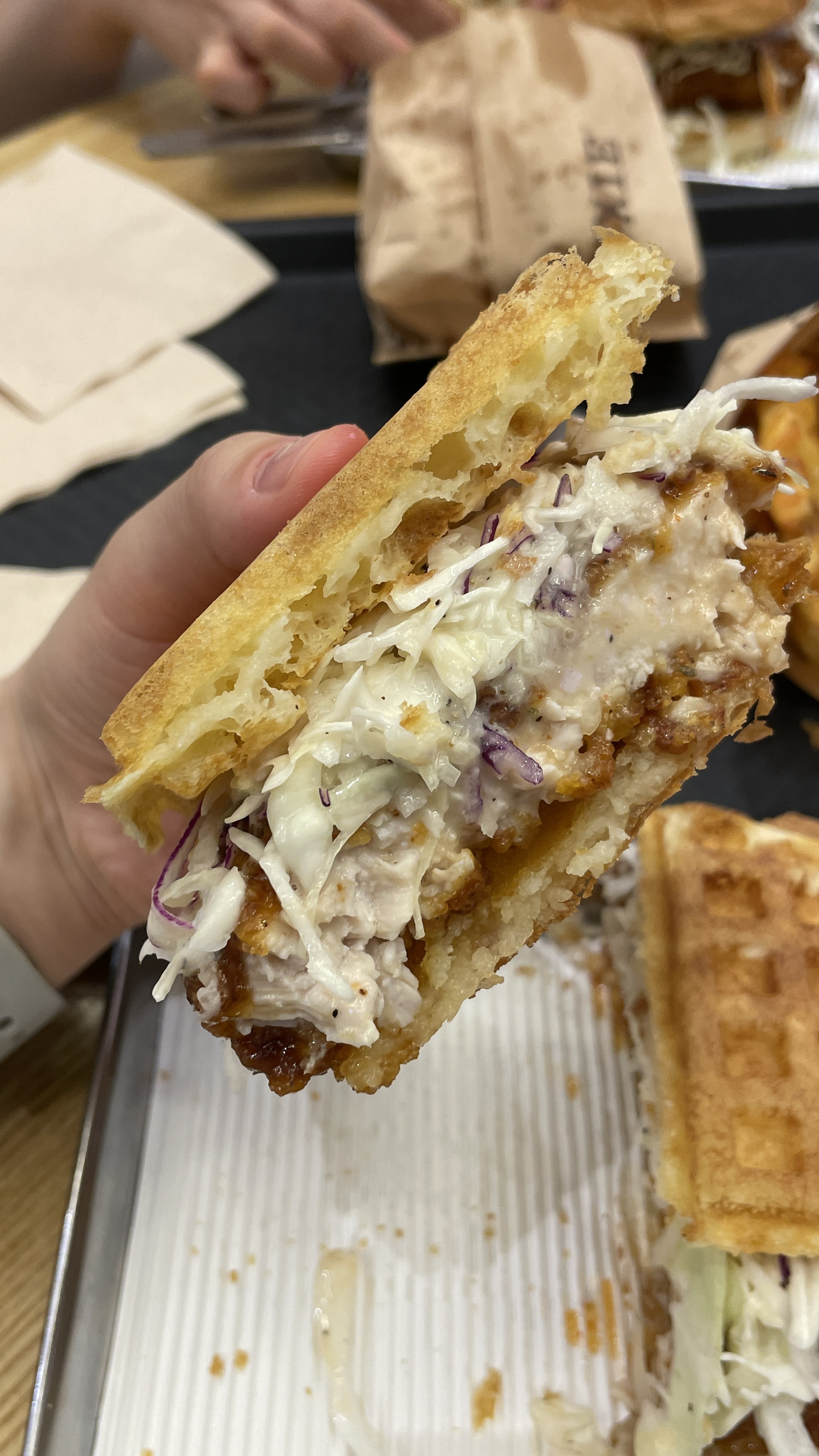 나는 오리지널 치킨 와플샌드위치,