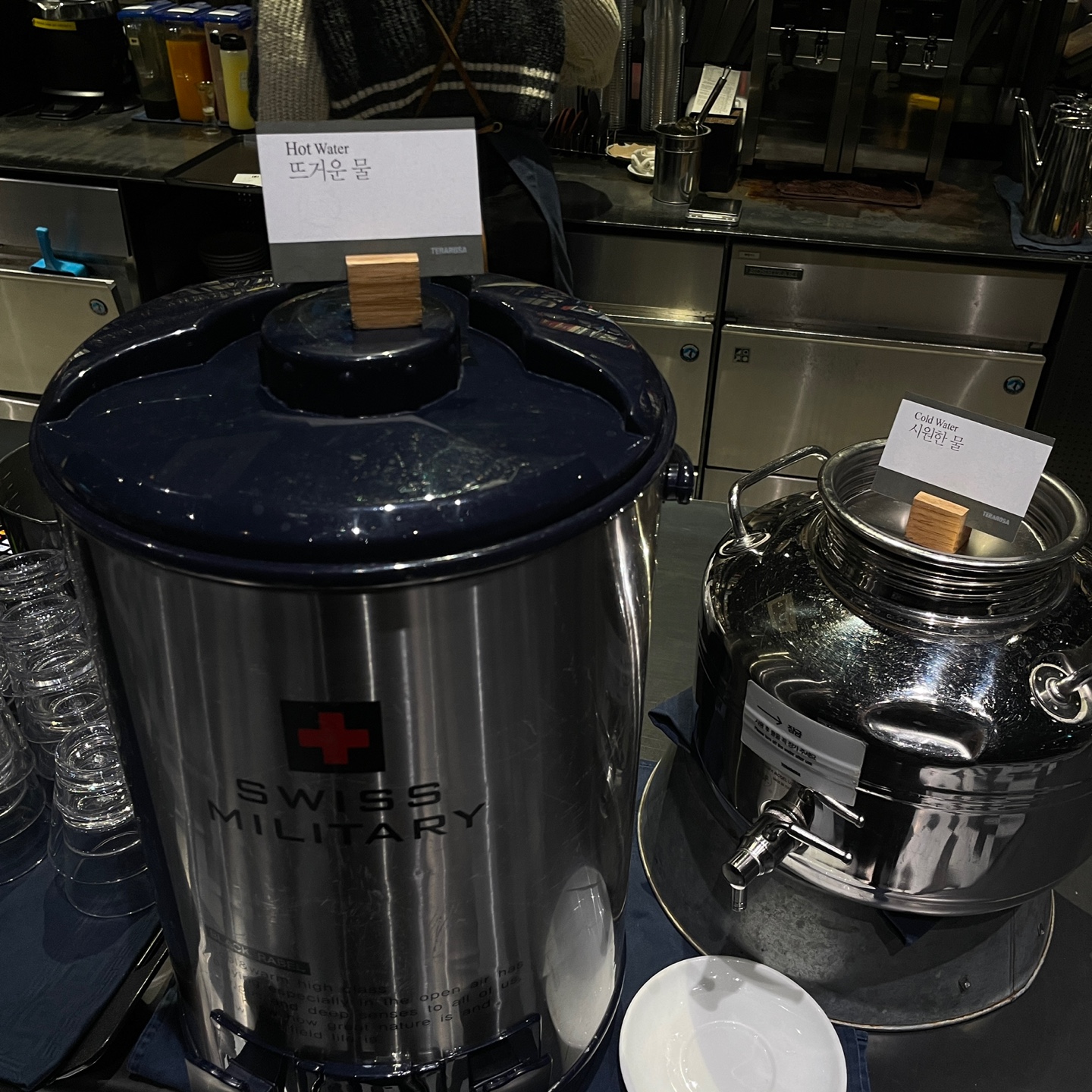 셀프바에는 뜨거운 물과 시원한 물