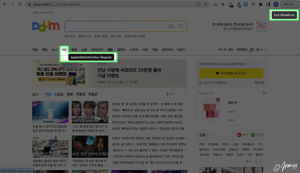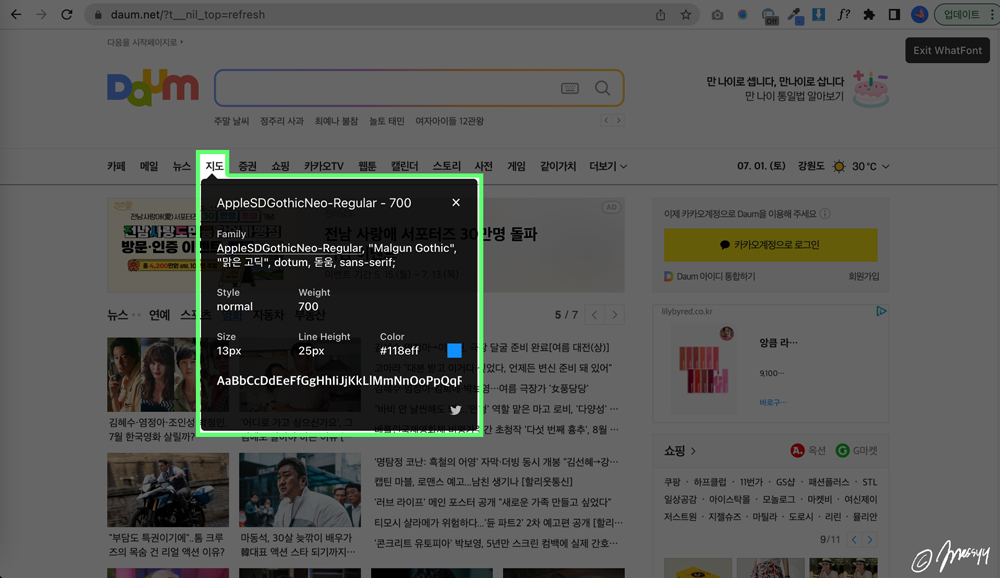 웹 사이트 내에서 사용된 서체명, 폰트 크기, 폰트 굵기 등에 대한 정보를 제공해준다.