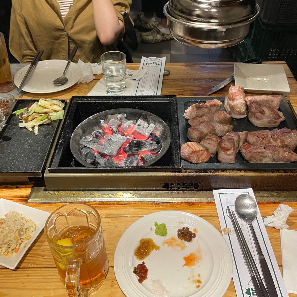 2차로 숯향 가득하게 잘 구워주니까 돼지고기가 굉장히 촉촉하니 고급진 맛이 났다.